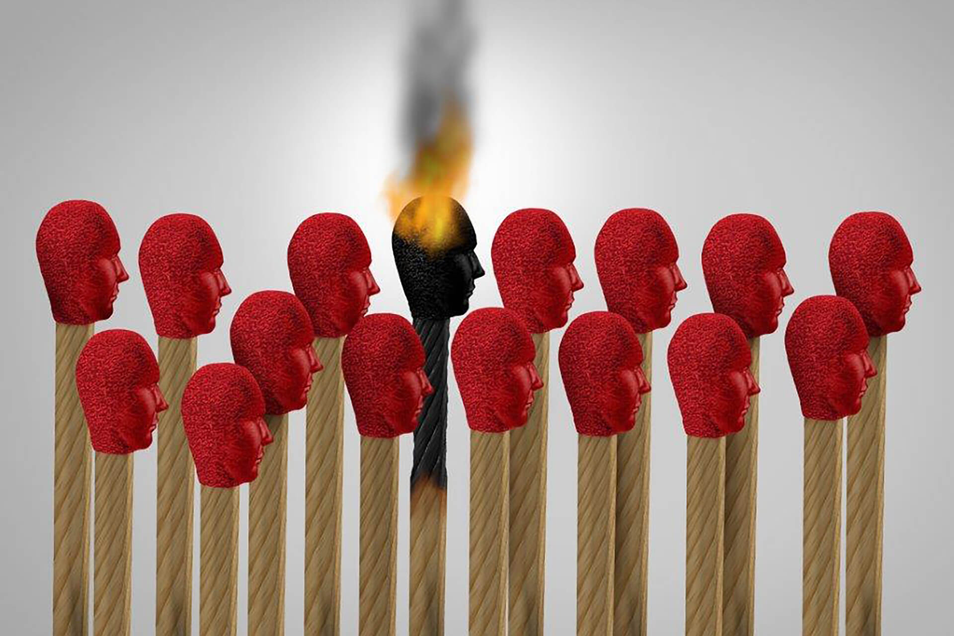 Burnout hat viele Gesichter und Ursachen. Körper, Geist, Seele und Beziehungen geraten aus dem Takt. Alles ist miteinander verknüpft. Ausbrennen durch Über- oder Unterforderung in einem Bereich bedingt Störungen und Ausbrennen in den anderen Bereichen.